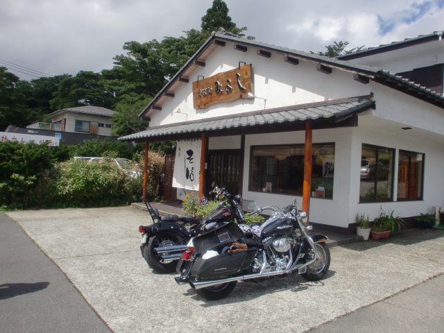 写真は途中の芦ノ湖にて、雰囲気の良いお蕎麦屋さん‘みよし‘です。